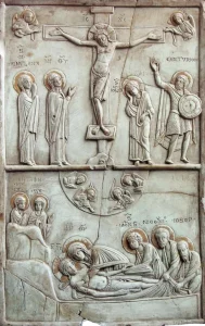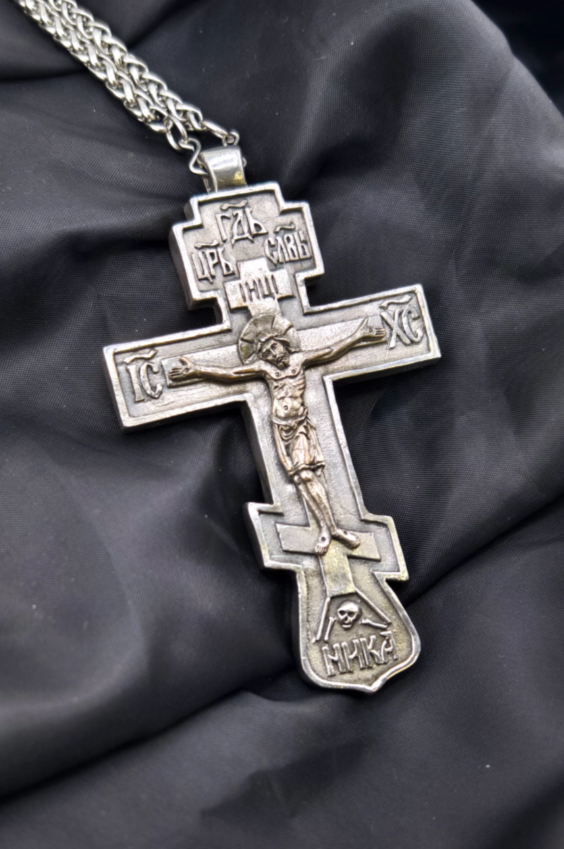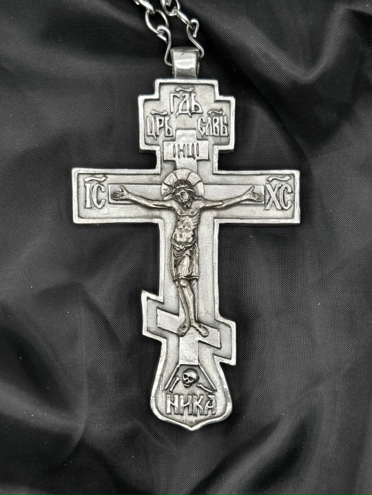 Это иерейский Николаевский крест, который подходит для молодых священников. Образец для Распятия нашли в Эрмитаже, 12 век…