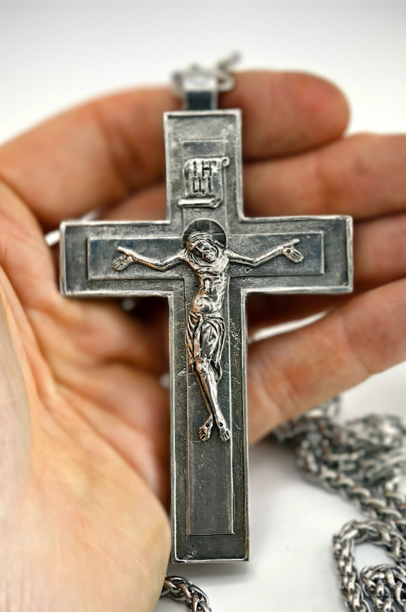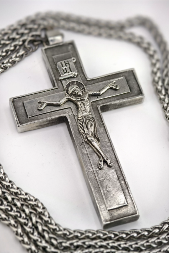 Иконография: На кресте изображен Христос с закрытыми глазами, изогнутым телом и выражением глубокого страдания, что стало новым стандартом для того времени.