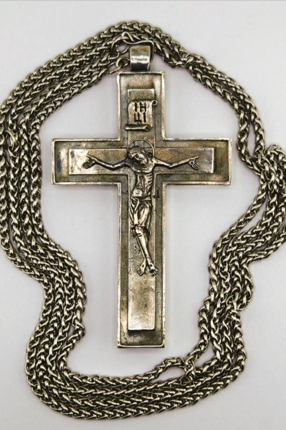 Крест иерейский “Павловский” с распятием XIII век (серебрение)