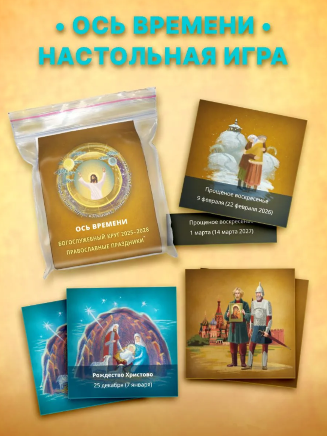 «Ось времени: Богослужебный круг» — это уникальная образовательная настольная игра, посвящённая православному богослужебному году.